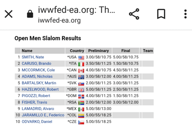 Robbie, the 2022 +45 Men Slalom champion, suffered an early fall on the 12m rope in the preliminary round when his ski clipped buoy 4. Unfortunately, a score of 3.5 buoys on a 12m rope was not enough to make the finals and defend his title.